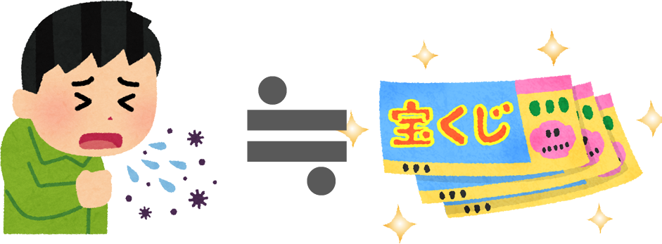 感染する確率 ≒ 宝くじで高額当選する確率