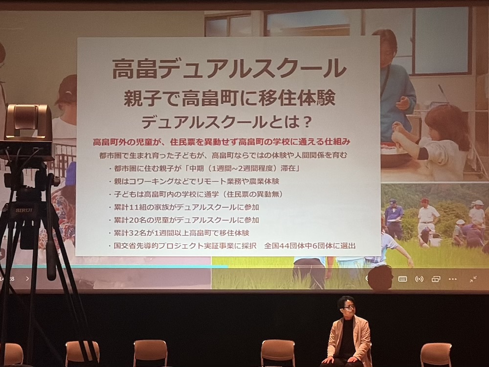 家族単位で高畠に一定期間滞在する取り組みで、これまで3年度、1週間以上の滞在者が32名という説明がありました。外から高畠に関わる入口をつくる事業として語られていました。 - パネラーC